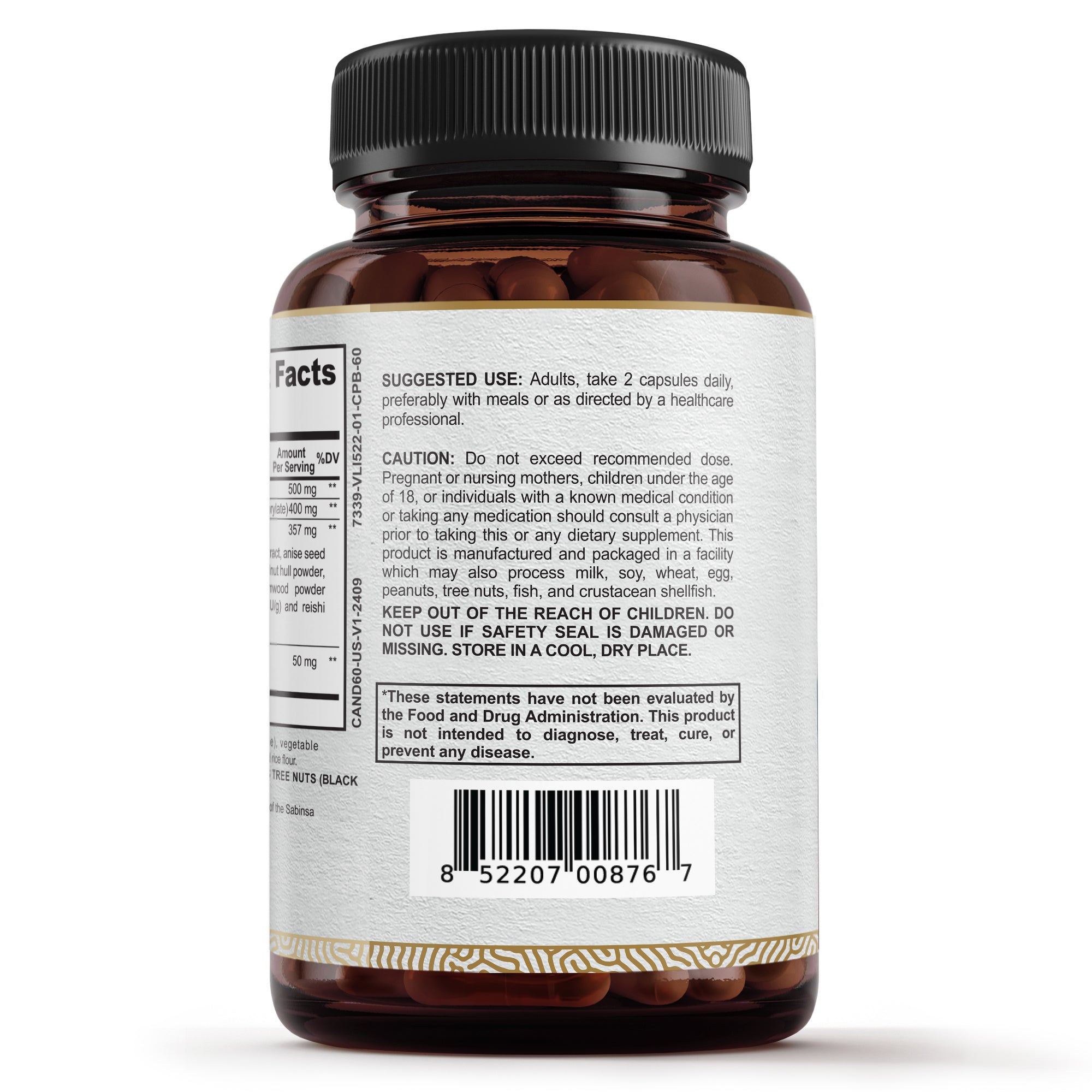 CAPRYLIC ACID, OREGANO & PROBIOTICS: Our candida support supplement includes oregano, caprylic acid, aloe vera, black walnut, reishi, anise seed, mushroom extract, arabinogalactan, wormwood, cellulase, protease and probiotics to help support intestinal health.* Our candida support supplement supports overall well-being.*