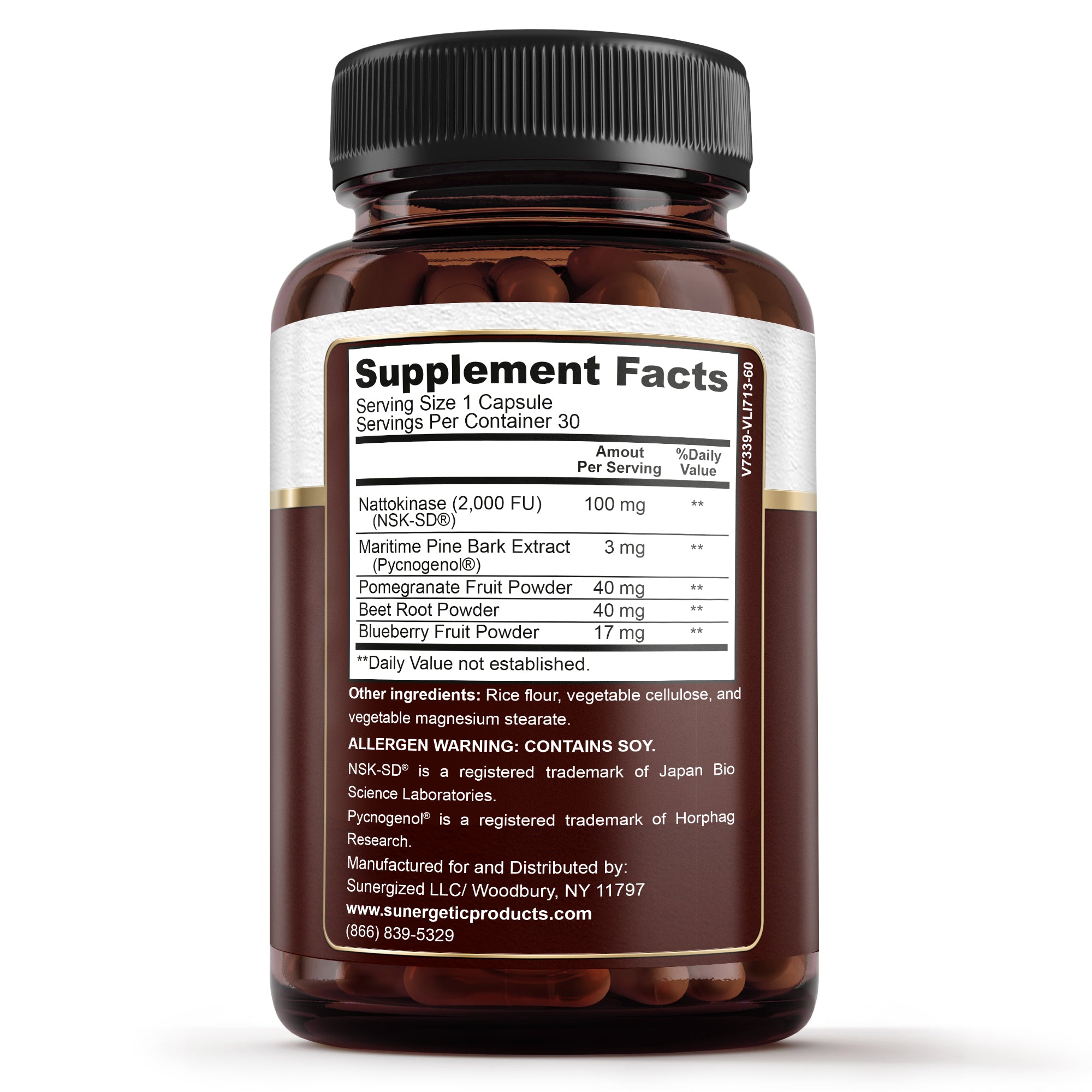 WITH PCYNOGENOL, BEETS & BLUEBERRY: Unlike other nattokinase supplements, our artery support supplement includes pycnogenol, a well-known French maritime pine bark extract and pomegranate, blueberry and beet root for added health support. Just take one small capsule of our arterial health supplement per day to help support normal cardiovascular health.*